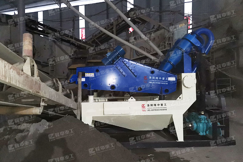 洗砂機(jī)溢流的洗沙廢水與細(xì)沙回收機(jī)的清洗槽相連,而后通過渣漿泵將清洗相中的砂水混合物輸送至泥高壓分離器中,通過高速離心力和額定的入料壓力,旋流器將礦漿中的細(xì)沙分離,濃縮后濃度提升至60-70%的細(xì)砂經(jīng)沉砂嘴提供給脫水篩,在篩機(jī)振動的作用下,細(xì)砂與水有效分離。