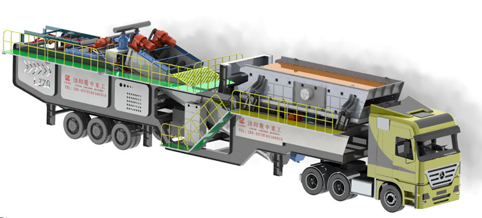 移動(dòng)式砂子篩洗是傳統(tǒng)機(jī)型的升J,將振動(dòng)篩放置在船型鋼架結(jié)構(gòu)組成的機(jī)動(dòng)載體,到達(dá)作業(yè)現(xiàn)場(chǎng)后,液壓螺栓緊固即可作業(yè),工作完畢無(wú)需拆裝,還是由半掛車(chē)?yán)呒纯,非常適合場(chǎng)地不固定的篩沙作業(yè)。