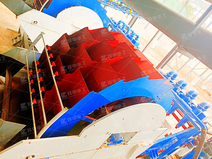 輪式洗砂機(jī),洗凈率高、細(xì)砂流失少、易損件少、運(yùn)行平穩(wěn)、占地面積小、省水節(jié)電,常規(guī)產(chǎn)量在20-250t/h,是礦山濕法制砂生產(chǎn)線中洗沙環(huán)節(jié)尤為常用設(shè)備之一。