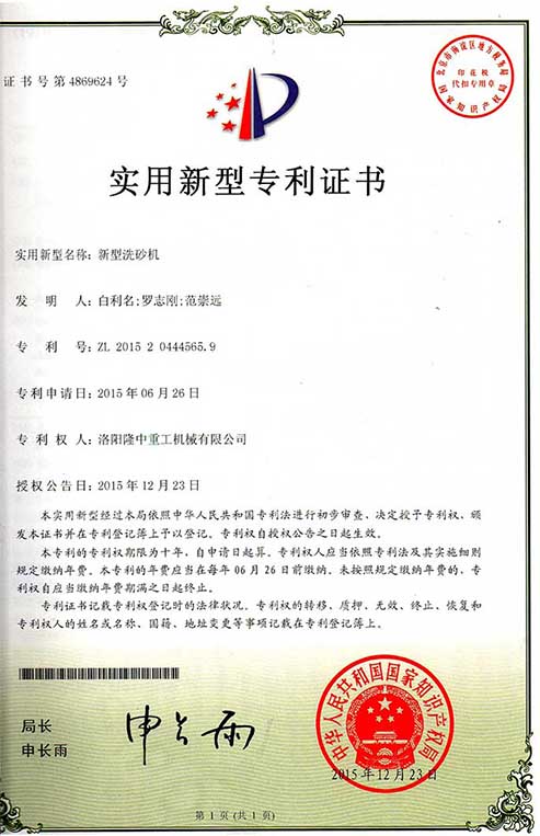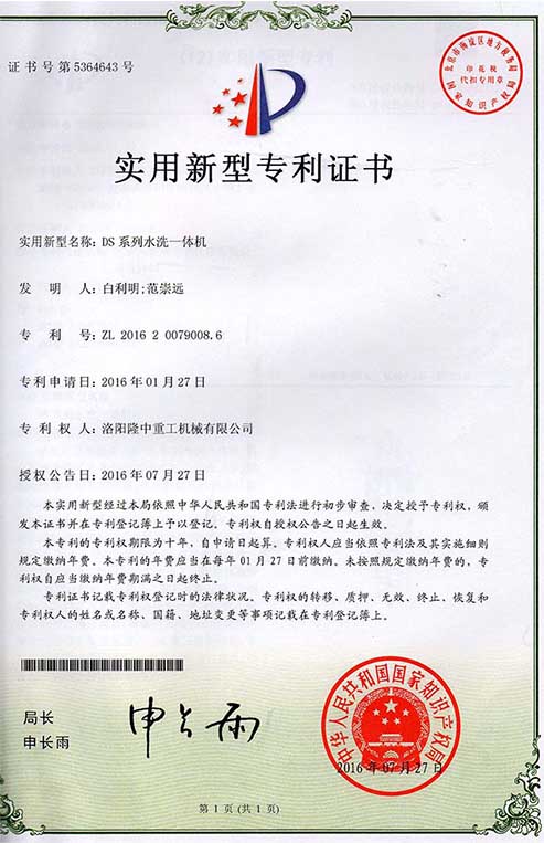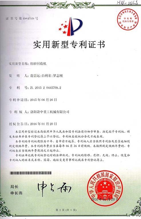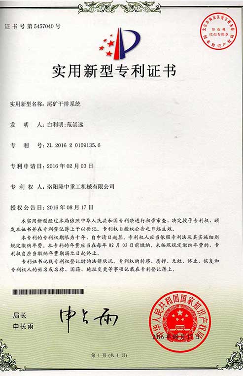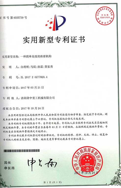Long Zhong heavy industry patent certificate