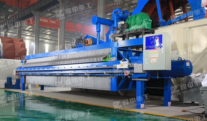 廂式壓濾機是利用濾布兩邊的壓力差,迫使物料中的J大部分水分透過濾布,流出機體外,而物料被阻隔在濾室內(nèi)形成濾餅,以達到過濾的目的。由于在過濾過程中濾布兩邊存在著較大的壓力差,提高了過濾速度降低了濾餅的含水率。