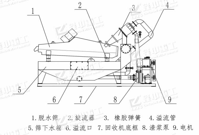 洗砂機(jī)溢流的洗沙廢水與細(xì)沙回收機(jī)的清洗槽相連,而后通過渣漿泵將清洗相中的砂水混合物輸送至泥高壓分離器中,通過高速離心力和額定的入料壓力,旋流器將礦漿中的細(xì)沙分離,濃縮后濃度提升至60-70%的細(xì)砂經(jīng)沉砂嘴提供給脫水篩,在篩機(jī)振動的作用下,細(xì)砂與水有效分離。