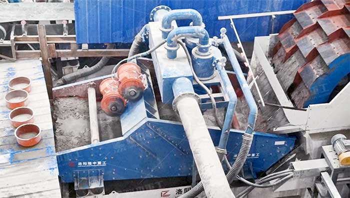 在制砂生產(chǎn)線的后期,對于含泥量大的沙子或是含沙量大的砂水混合物,僅配置洗砂機可能達不到**終成品砂的要求,而且還有一個細砂流失嚴重的弊端,要解決這個問題,就要用到細砂回收系統(tǒng)。